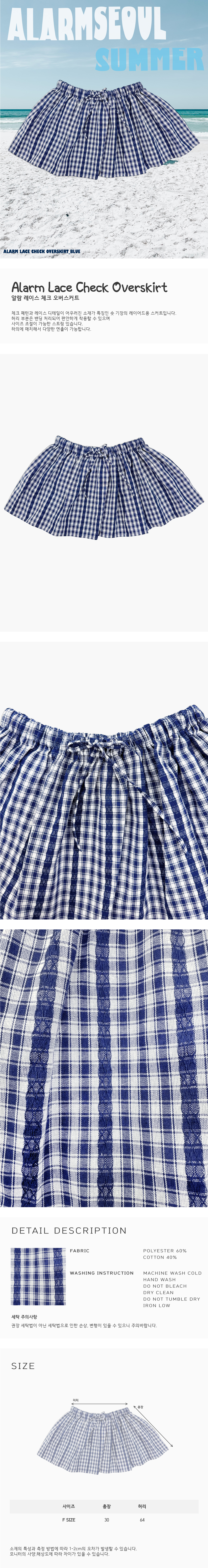체크 패턴과 레이스 디테일이 어우러진 소재가 특징인 숏 기장의 레이어드용 스커트입니다.